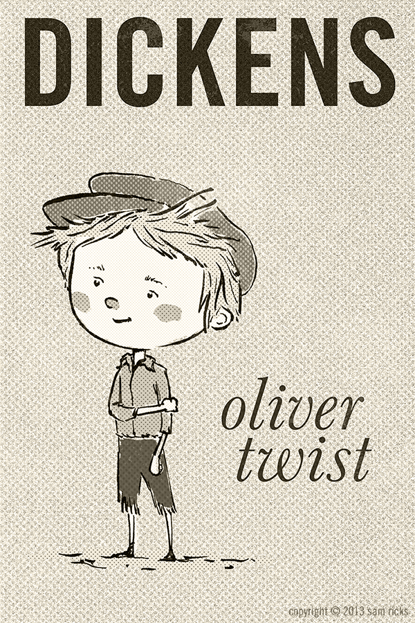 I made this just to play around with halftones and textures. Kinda fun. The layout has some odd trapped spaces, and Oliver is looking off to the left with very little lead room for his face. I thought this sort of tension worked, since the story is about a boy caught in difficult circumstances.My wife hates the musical, Oliver! I think she can't get past the boy's soprano voice. We used to make fun of the line "just thinking of growing fat" all the time at my house, but I love the movie.